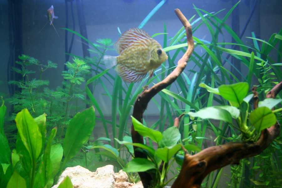 Что бы создать для рыбок настоящий водоем можно украсить аквариум водорослями и деревом