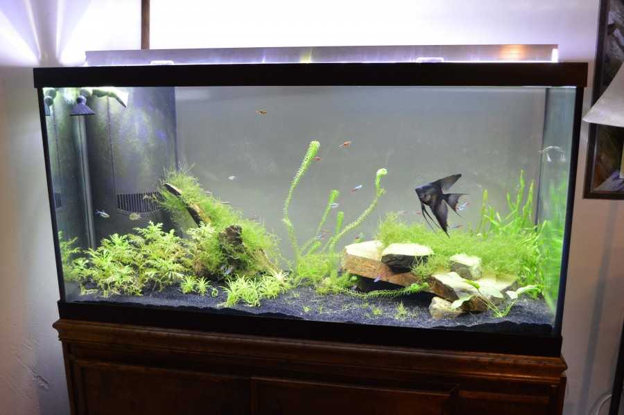 100 литров — наиболее комфортный литраж для творчества и спокойного проживания рыб разных размеров. В 100-литровом домашнем аквариуме возможно создать засаженный сад со многими акцентов или устроить минималистичное место обитания питомцев. Уживаются как маленькие, так и довольно крупные рыбы.