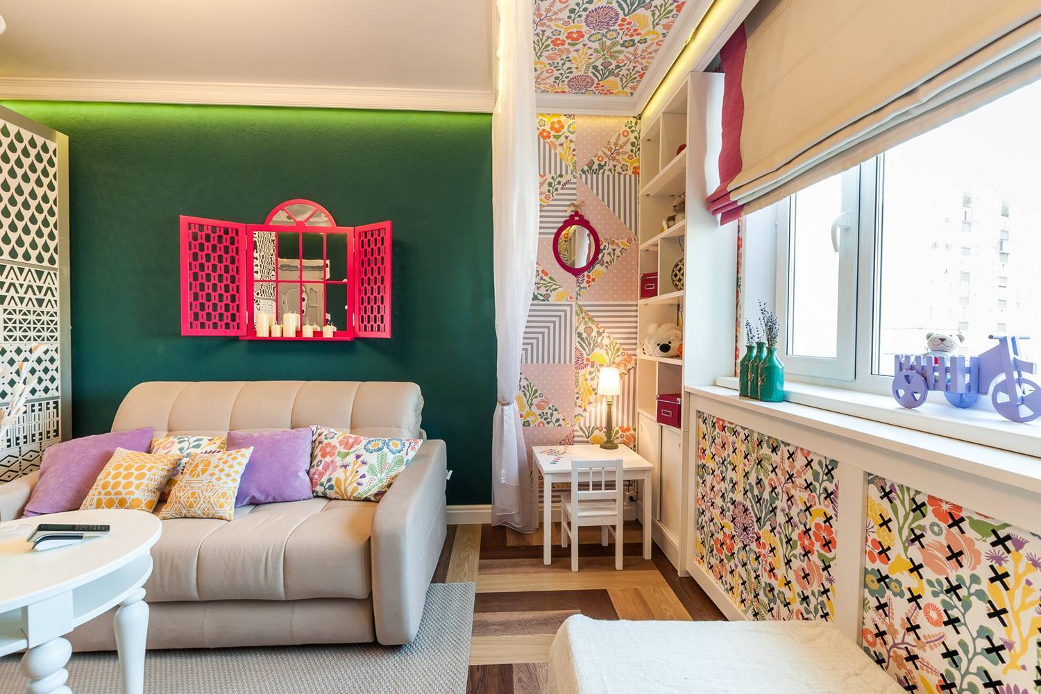 Пэчворк в дизайне интерьера может удачно сочетаться с другими стилями. Рассмотрим наиболее эффектные комбинации: