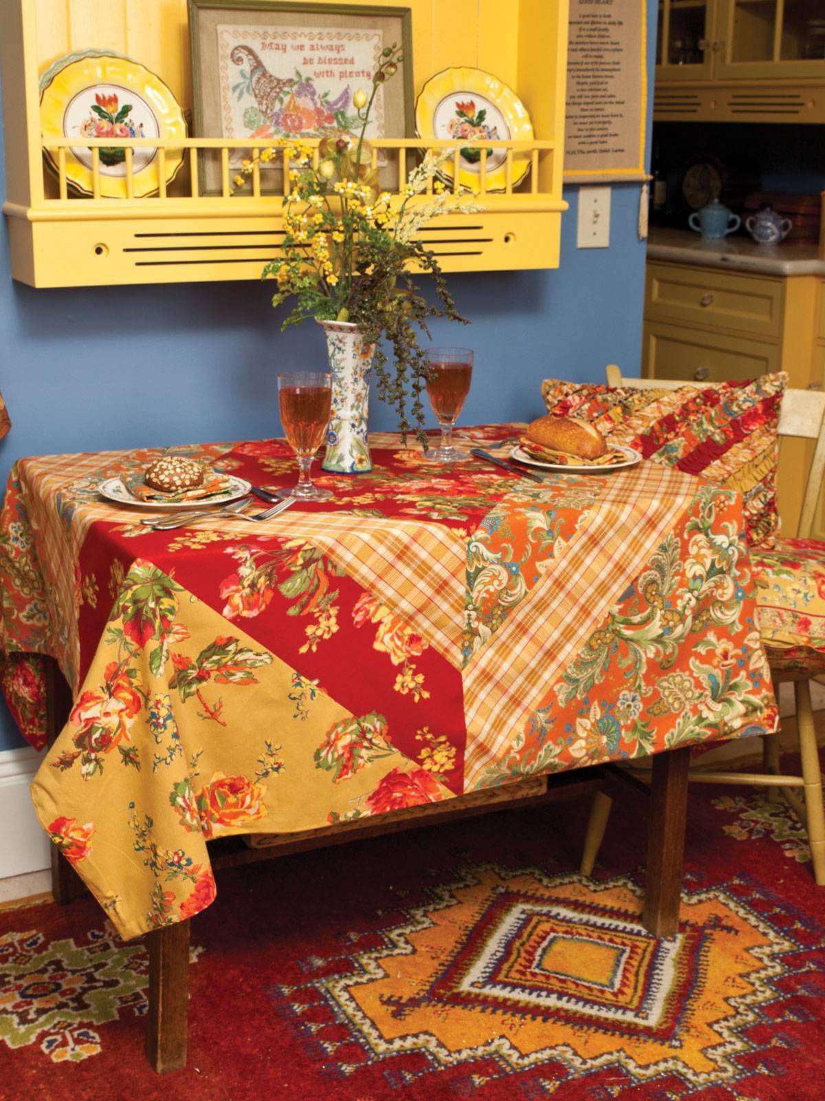 Конечно, самый очевидный вариант — кухонный текстиль. Шторы, скатерти, полотенца, подставки под горячее… Такие красочные мазки пэчворка оживят и украсят собой весь интерьер, поэтому не бойтесь экспериментировать с цветами и фактурами.