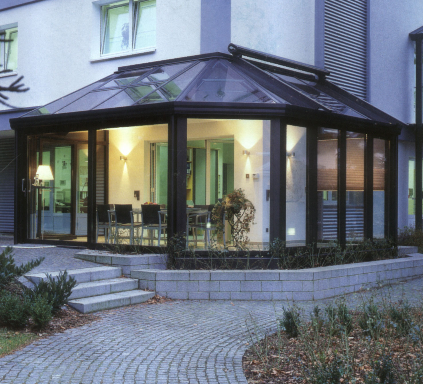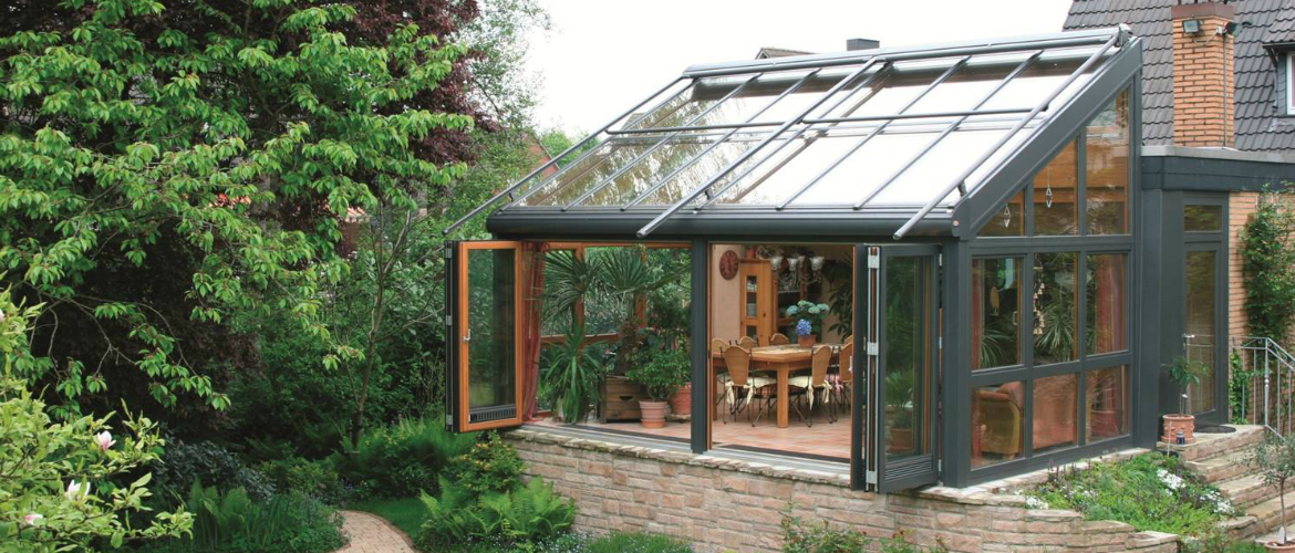 В частном доме пристройку с зимним садом можно сделать из стекла