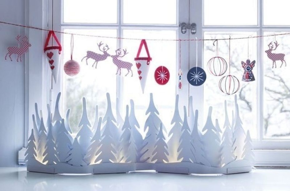 Взгляните, как выглядит окно, украшенное вырезными новогодними украшениями. Елочки, снежинки, Дед Мороз на санях с подарками, колокольчики – все это создаст неповторимую целостную картину, которая обязательно порадует детей.