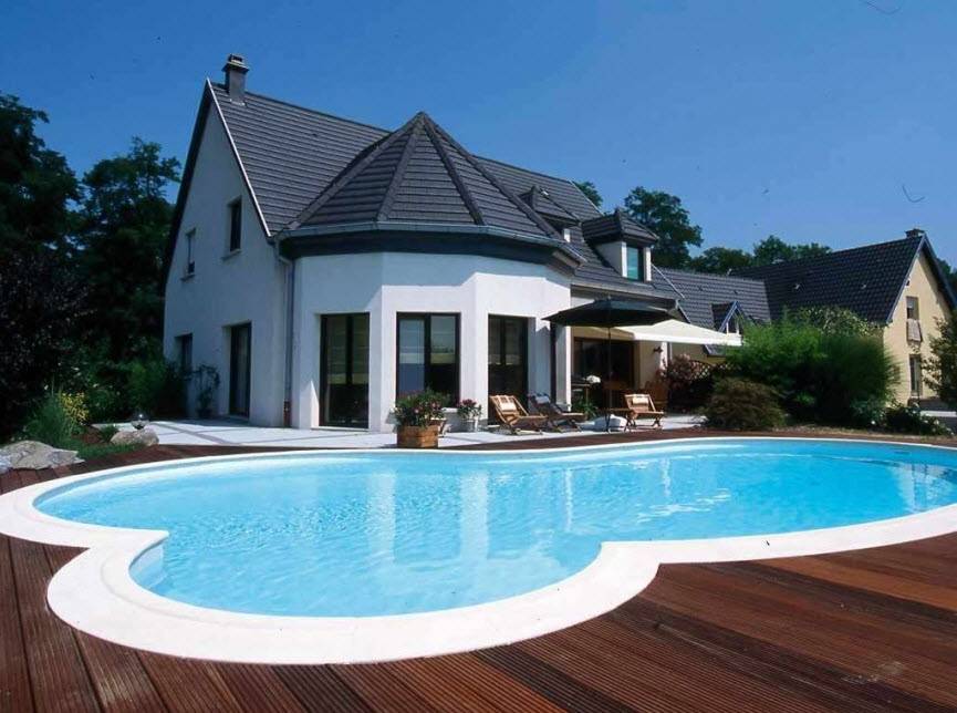 В стандартном бассейне возможно применение разных функций: гидромассажа, подогрева воды, подсветки. К одной из сторон бассейна, размещенного как на участке, так и в доме, можно подсоединить горку или трамплин. Но не забывайте о том, что именно этот бассейн является самым дорогим.