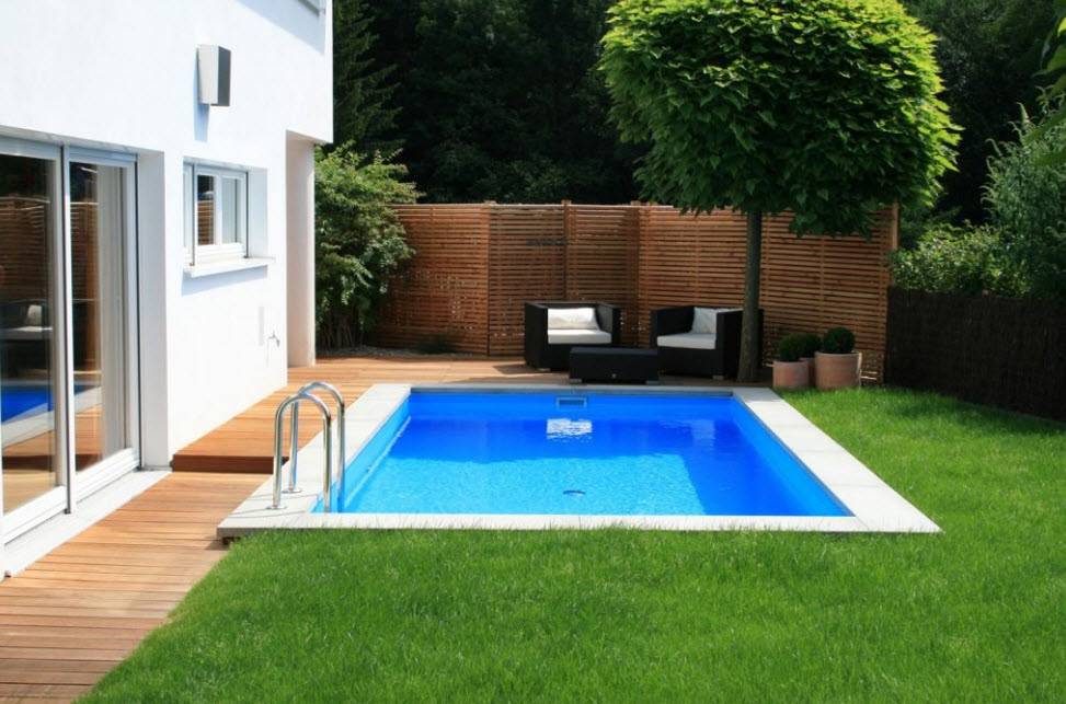 Маленьких надувной бассейн. Наиболее бюджетный вариант, отлично подходящий для детских развлечений и временного размещения на территории дачи. Небольшой объем позволяет быстро набрать и прогреть воду, кроме этого, размеры позволяют почти мгновенно установить и убрать обратно весь элемент;