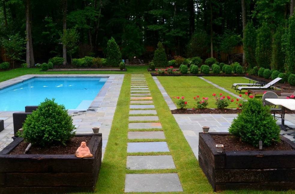 Линейные мотивы общей картины оформления изгороди, области отдохновения выражены элегантностью простоты, строгостью форм. Ухоженные растения завершают четкость, лаконичность линий.