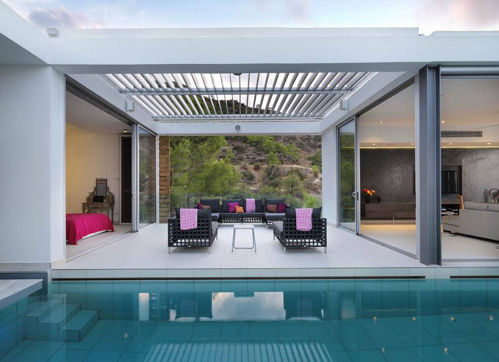 Ниже видим водную гладь на вилле Cypress. Зона отдыха великолепно освещена благодаря покрытию решетчатым потолком.