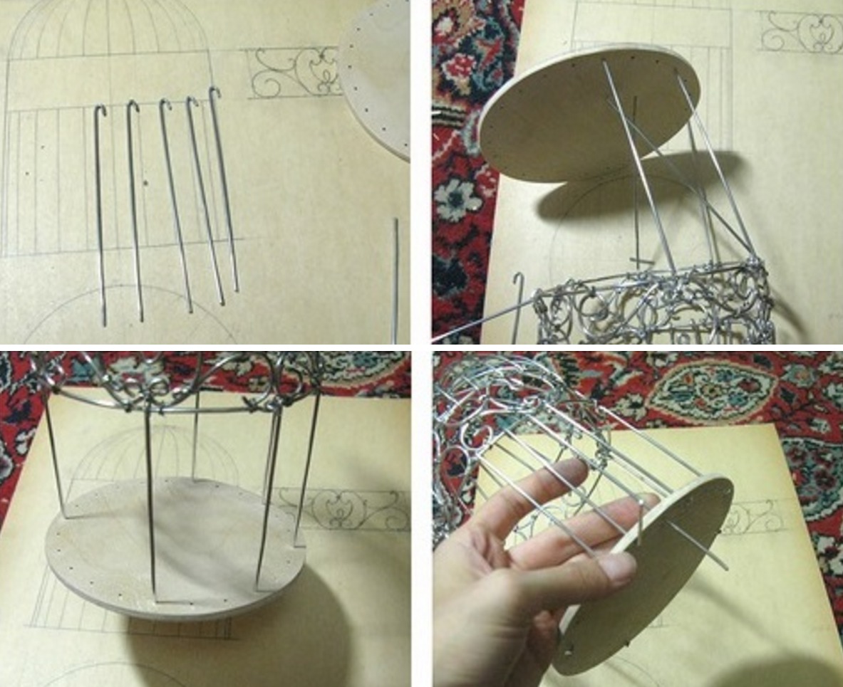, соответственно – верх и низ клетки. Элементы узора соединяются дополнительной проволокой.