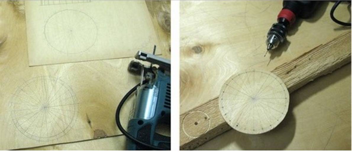 5. Фанерное основание должно отвечать радиусу проволочных окружностей. На нем карандашом обозначаются места для проволоки