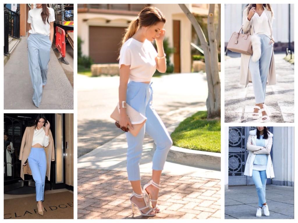 С чем носить голубые брюки?