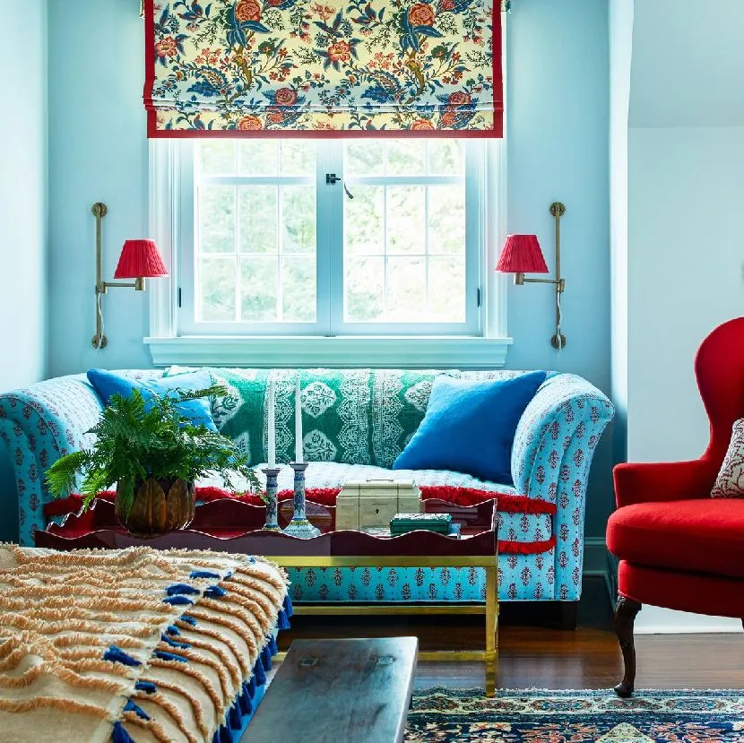 Красные акценты в зоне отдыхаИсточник hips.hearstapps.com