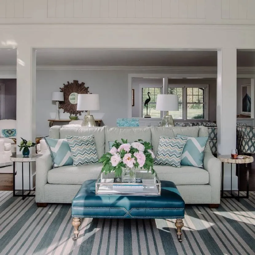 . Неся с собой элегантность, небесный оттенок «упрощает» общий дизайн, освобождая его от ненужной вычурности и помпезности, при условии, что вы знаете, какой цвет сочетается с голубым в интерьере.