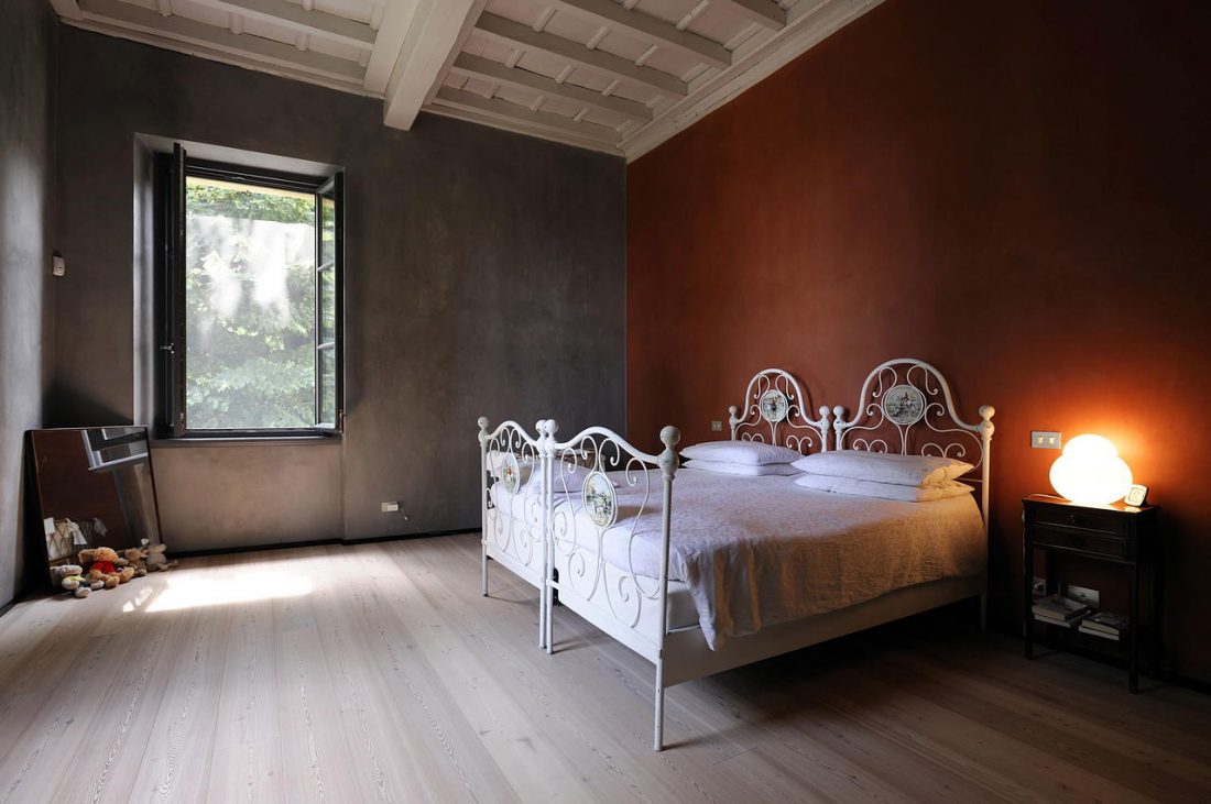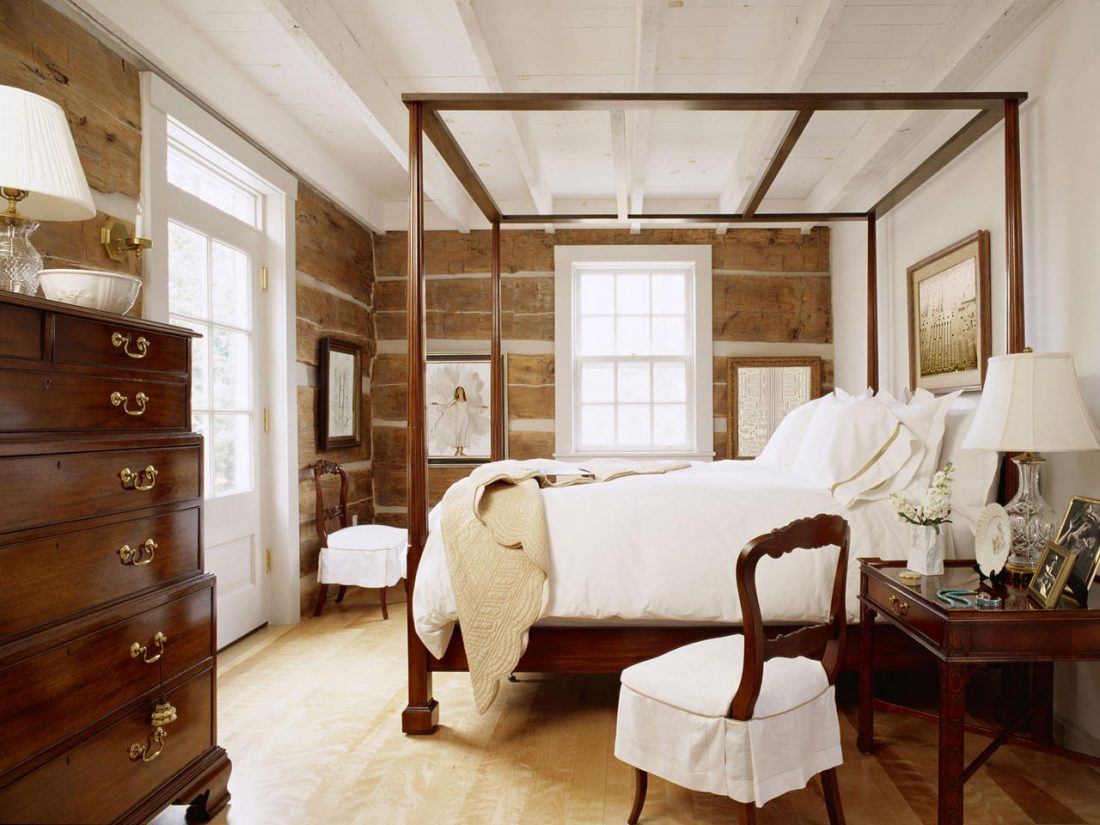 Спальня | При оформлении спальной комнаты все намного проще. «Старыми» можно сделать изголовье спального места, туалетный столик, разместить на стенах или потолке несколько декоративных балок. Если не экономить на осветительных приборах, приобрести хорошие потолочные светильники, их свет будет выгодно подчеркивать все потертости и трещинки. |