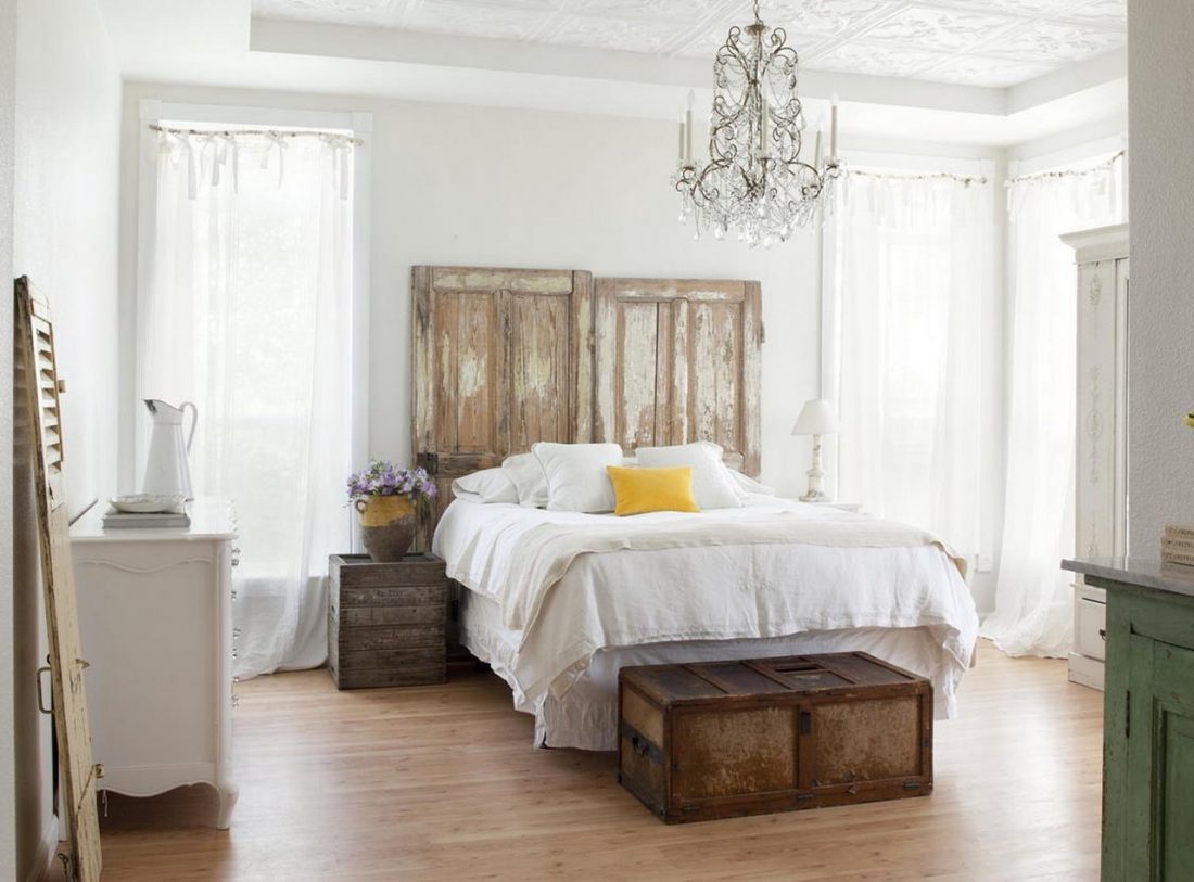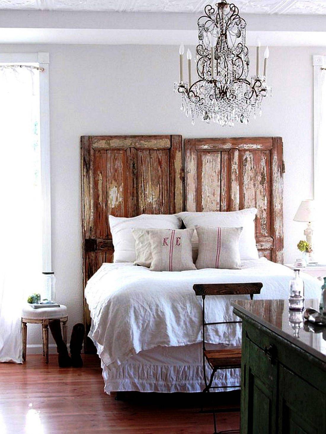 Старая доска, созданная своими руками, украсит изголовье кровати в спальне