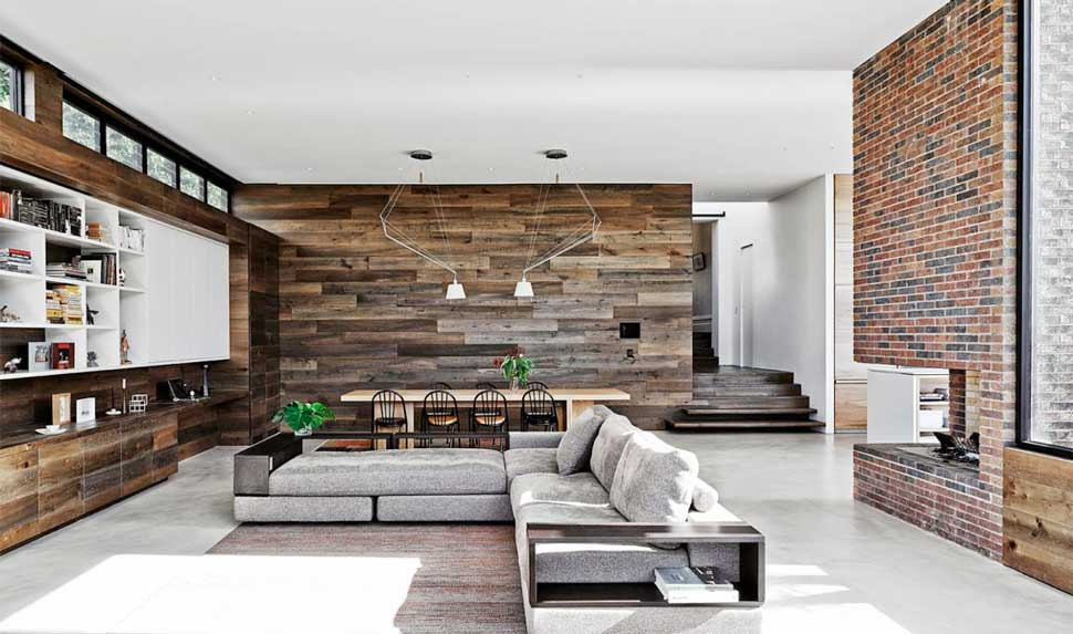 Использование старых досок в современном доме уместно при отделке любого помещения: