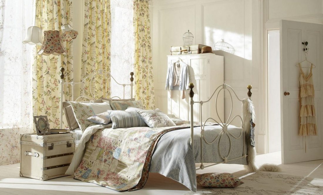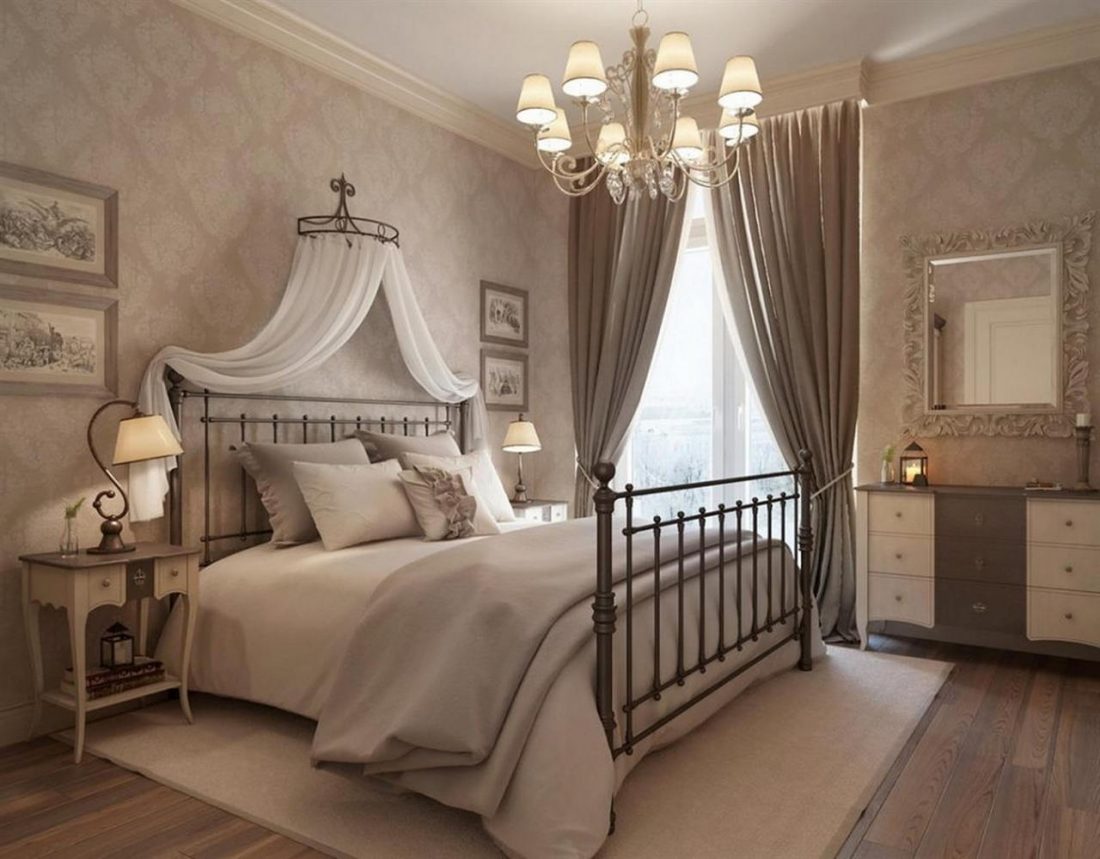 Здесь будет уместно использовать множество небольших подушек, оборок, ажурных кружев. Их можно разместить даже на мебели для придания ей особого настроения. Зеркало – деталь, которая обычно присутствует в спальне, чтобы хозяйка могла примерять наряды прямо здесь. Старинные рамы обычно являются отдельным украшением интерьера. Это резные, позолоченные багеты, массивные или изящные. Само зеркало при этом имеет интересные переливы, потому что ранние технологии изготовления таких изделий отличаются от современных.