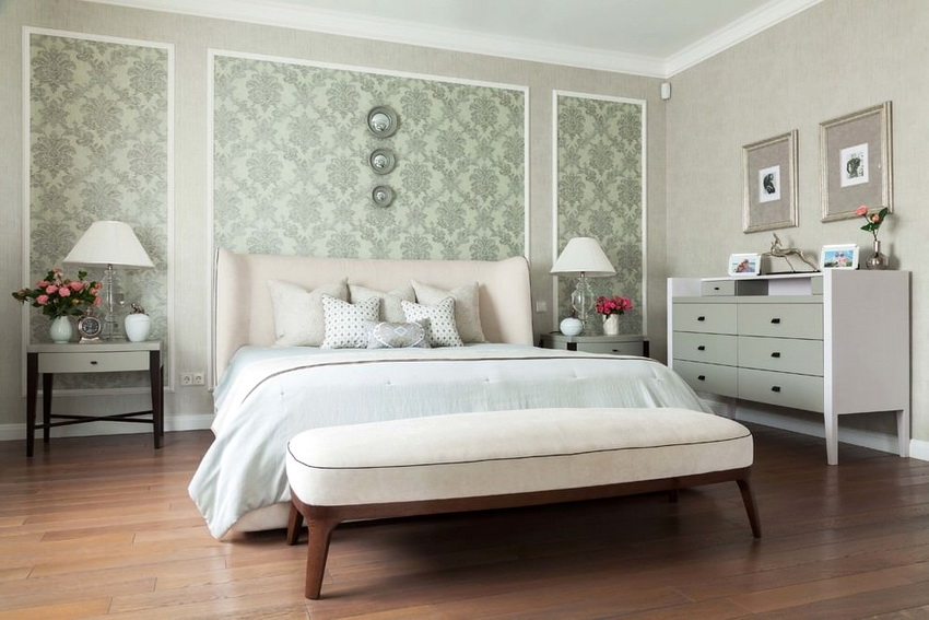 Белый цвет великолепно сочетается со всеми оттенками синего, зеленого, бежевого, что позволяет создавать поистине роскошные интерьеры спален
