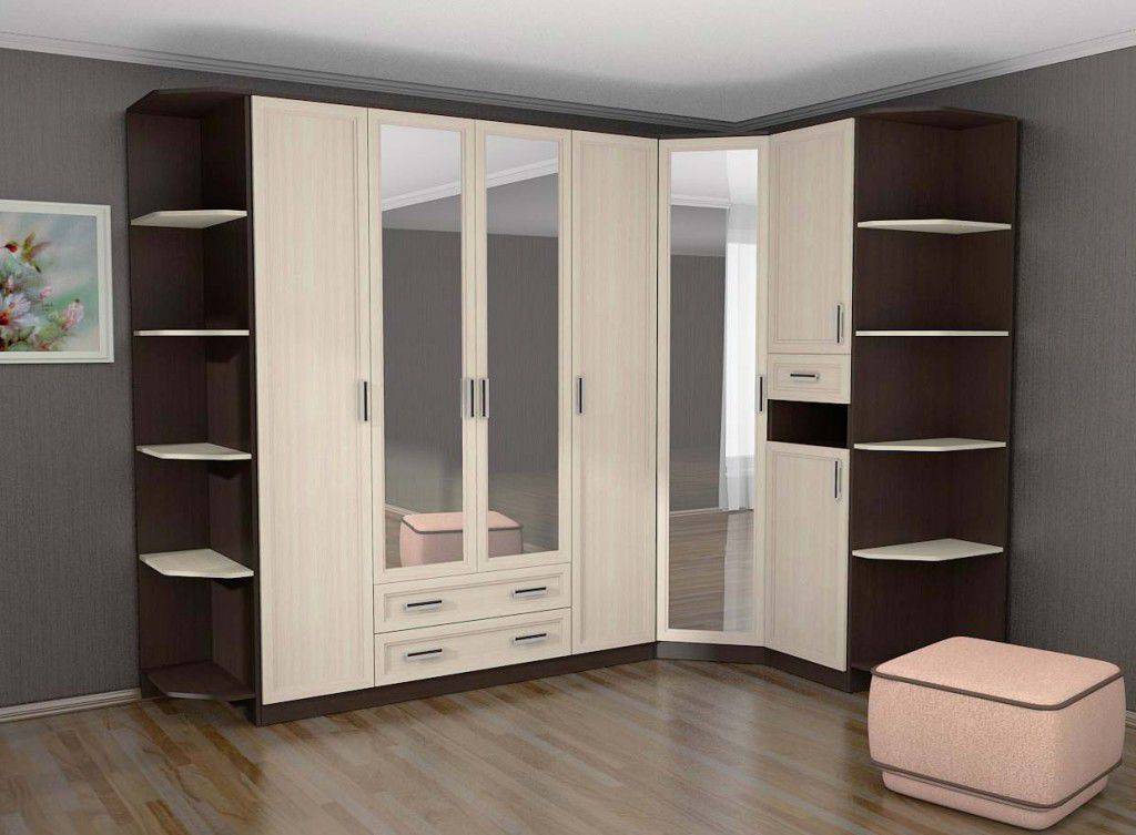 Угловой шкаф купе — достаточно модная модель, которая экономит место и является достаточно функциональной.Но нужно обратить внимание и на минусы данной модели. Если позволяет пространство спальни, то можно разместить вместе двери с распашным механизмом открытия и купе. Для изготовления стенок используется ДСП, которые легко поддается окраске и разнообразному дизайну