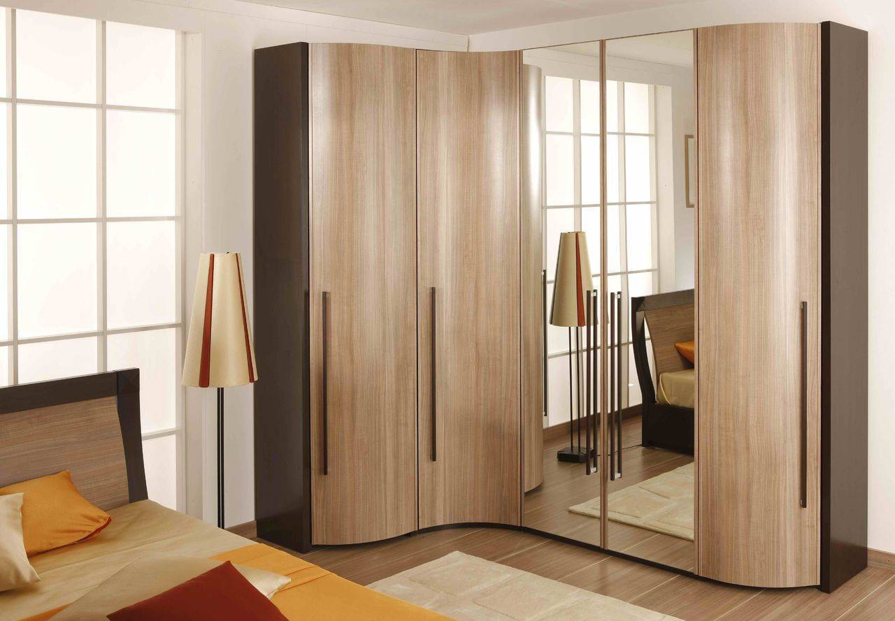 - угловые спальные гарнитуры обязательно комплектуются угловым шкафом, который является отличный вариантом экономии пространства. Нежелательно устанавливать шкаф возле стены, где есть окно, так как в дневное время внутреннее содержимое будет недостаточно освещаться естественным светом. Лучше поставить шкаф у стены напротив/сбоку окна.