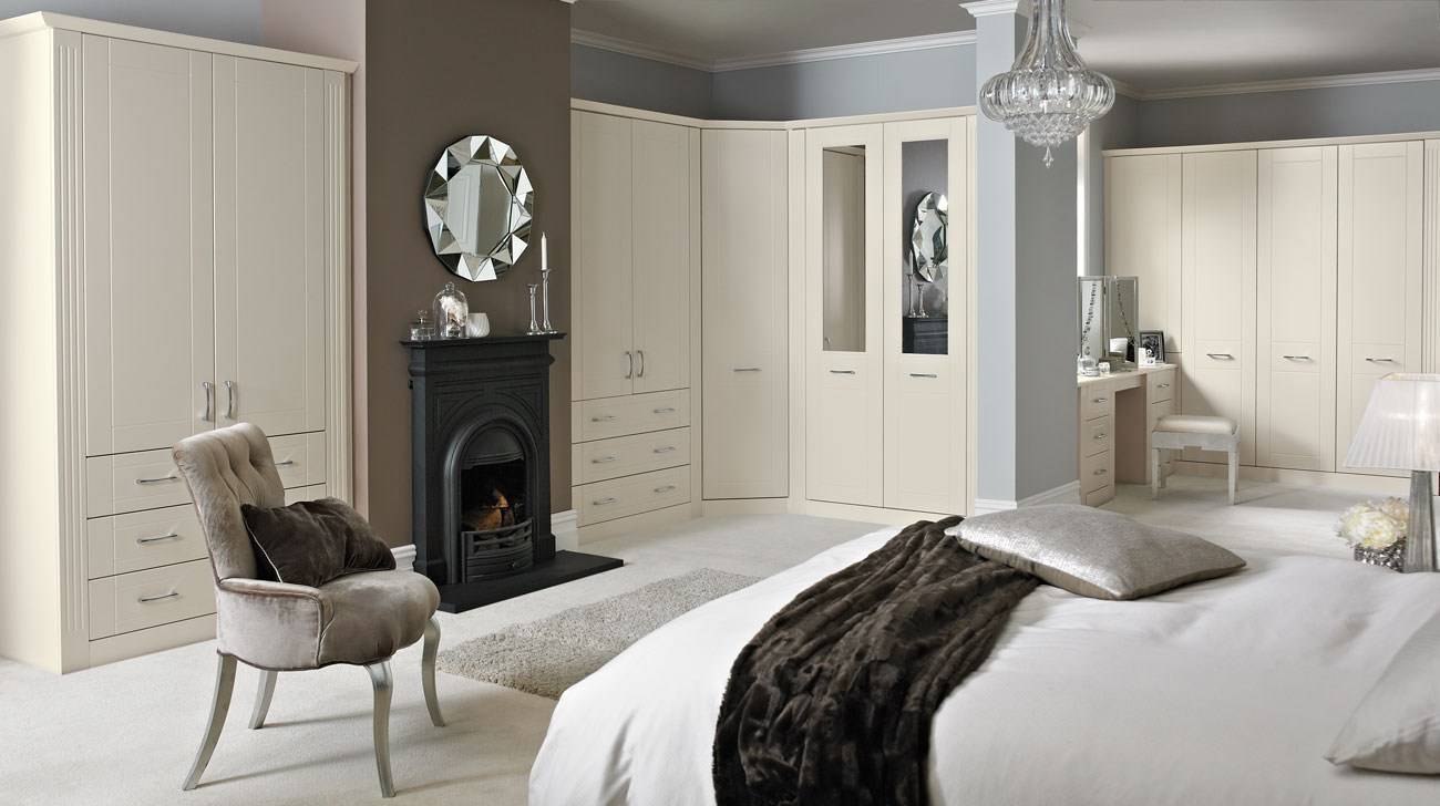 Традиционно в комплект мебели для спальни входят кровать, шкаф и прикроватные тумбы. Расширенный комплект также подразумевает комод и туалетный столик. Впрочем, число различных вариаций здесь может быть огромно — тумбы объединяются с кроватью, а шкаф с распашными дверцами замешается системой типа «купе», в интерьер включается большое количество полок и зеркал.