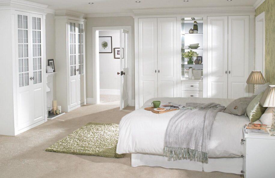В классическом интерьере спальни мебель белого цвета — беспроигрышный выбор.