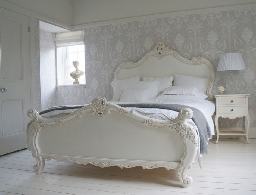 В данном стиле кровать, шкаф, тумбочки могут быть как утонченные, изящные, так и более в современном исполнении, построже.