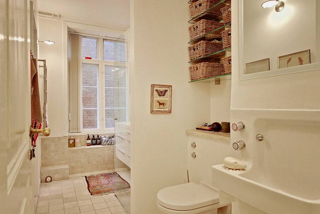 Нужно тщательно продумать план расположения аксессуаров, чтобы доставать и убирать нужные предметы можно было без усилий, и в то же время стены помещения не были бы сплошь завешаны полками.
