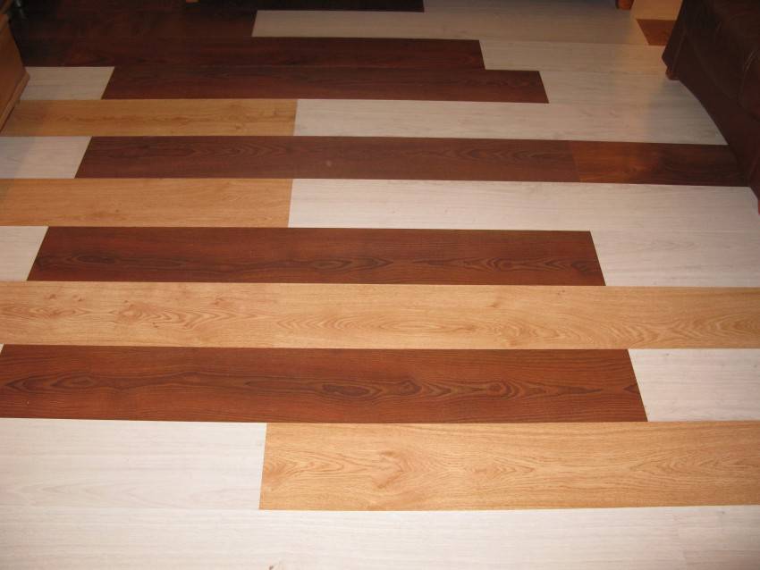 холодной и комбинированной вперемежку. Ламинат в коричневинку, с зеленоватым