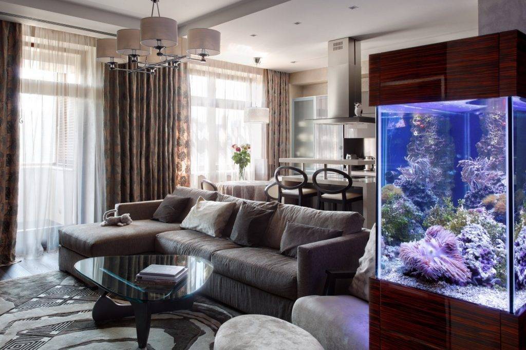 Для человека же увлеченного разведением рыбок чаще всего не столь важно, как будет смотреться его аквариум, ему достаточно его наличие со всем необходимым для любимых питомцев. Но сегодня открываются огромные возможности по созданию уютного и уникального оформления помещений, поэтому все чаще размещение аквариума в интерьере квартиры становится частью дизайн-проекта в начале ремонта