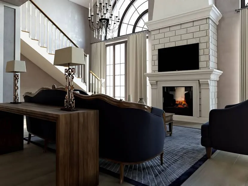 Но, если принимается решение установить классический камин, то его желательно расположить у стены между двух окон первого уровня. Или хотя бы сбоку от них. Этот прием поможет погасить теплопотери. К тому же такое положение не нарушит гармонию в интерьере.