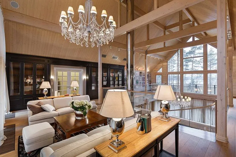 Интерьер гостиной в загородном доме зависит от множества деталей. В качестве декора могут выступать самые разнообразные предметы.
