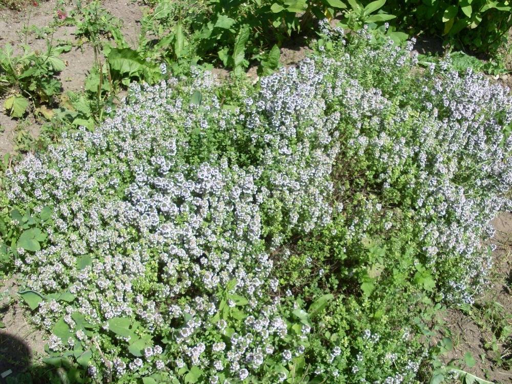 Низкорослый кустарник, обладающий как прямыми, так и ползущими стеблями. Листья круглой или овальной формы. Высота растений редко превышает 30 см. Если вовремя удалять стоячие побеги, высота слоя чабреца будет небольшой. Цветение приходится на август и начало сентября.