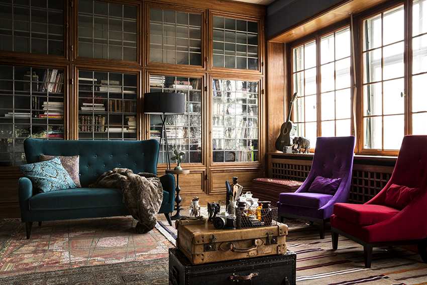 Хотя цвета бывают разными, приемлемыми будут только приглушенные тона. Нужно сказать «нет» чрезмерной яркости и контрастности. Другой вариант – пастельные оттенки и глубокие тона зеленого, темно-красного и горчичного. Основные узоры – это полосы, плед, цветочные и геральдические мотивы. Специалисты по дизайну подчеркивают обилие тканей с роскошной текстурой.