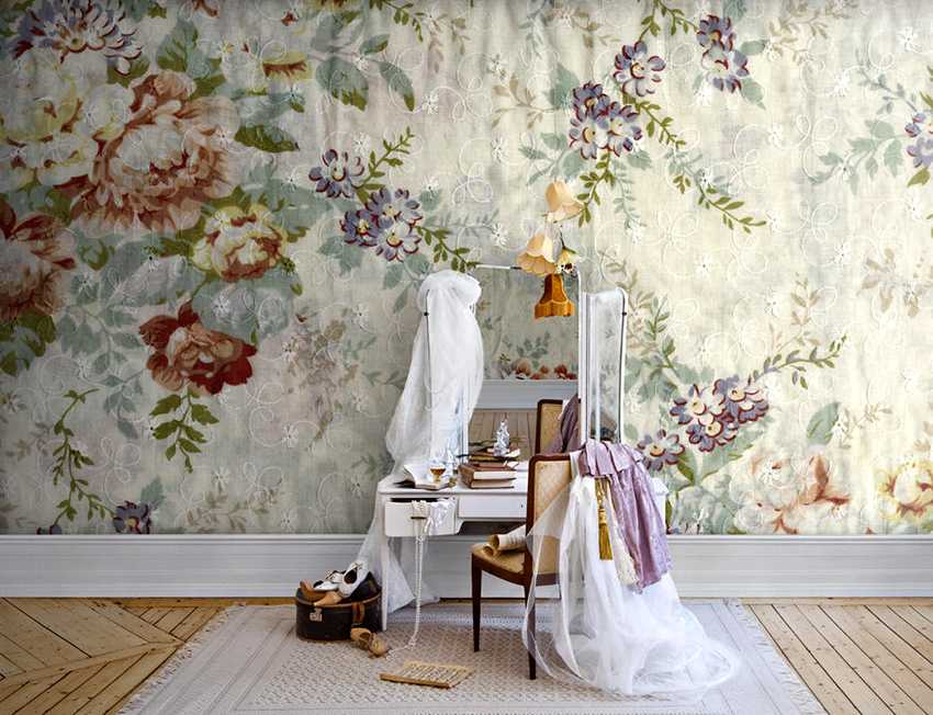 Цветочные мотивы должны присутствовать на 1-2 элементах интерьера, например: