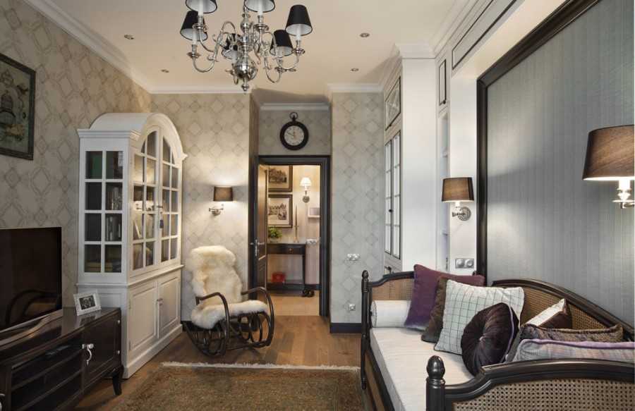 - Плотная планировка. Обычно, в комнате много мебели и она расставлена очень близко друг относительно друга.