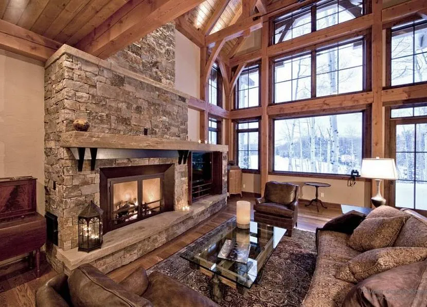 Внутреннее декорирование состоит из натуральных материалов, отделки с естественной палитрой. Комбинация дерева и камня оптимально подходит для строительства, украшения красивых домов с теплой, расслабляющей атмосферой.