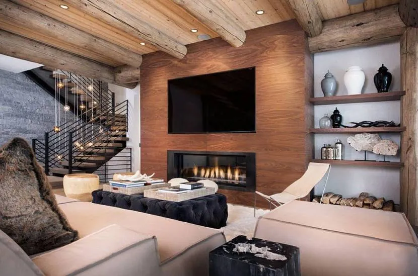 Основным элементом интерьера шале считается камин. По общему убеждению именно с него начинается идея альпийского стиля. Камин источает душевную теплую атмосферу. Сегодня элементы альпийского стиля используются в дизайне загородных домов. Но также интерьерное направление может быть воссоздано в городской квартире.