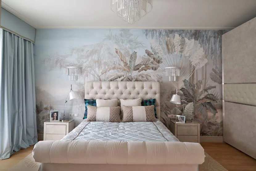 Данное оформление стен всегда выглядит очень привлекательно и наделяет пространство особой нежностью, мечтательностью и романтичностью.