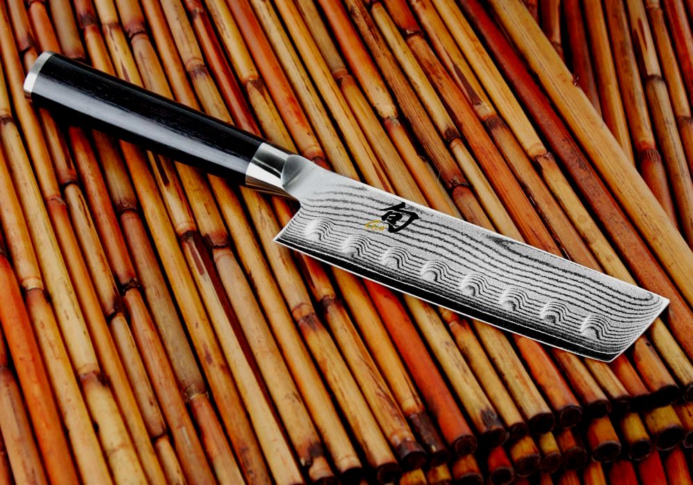 На заметку Сантоку, что в буквальном переводе с японского означает «три нужных вещи», – это японская переработка европейского кухонного ножа, за основу которого был взят французский нож для разделки мяса. Он короче, чем обычные клинки, отлично сбалансирован и обладает чрезвычайно острой заточенной кромкой острия, что способствует точной и быстрой нарезке мелких продуктов и кусочков мяса.