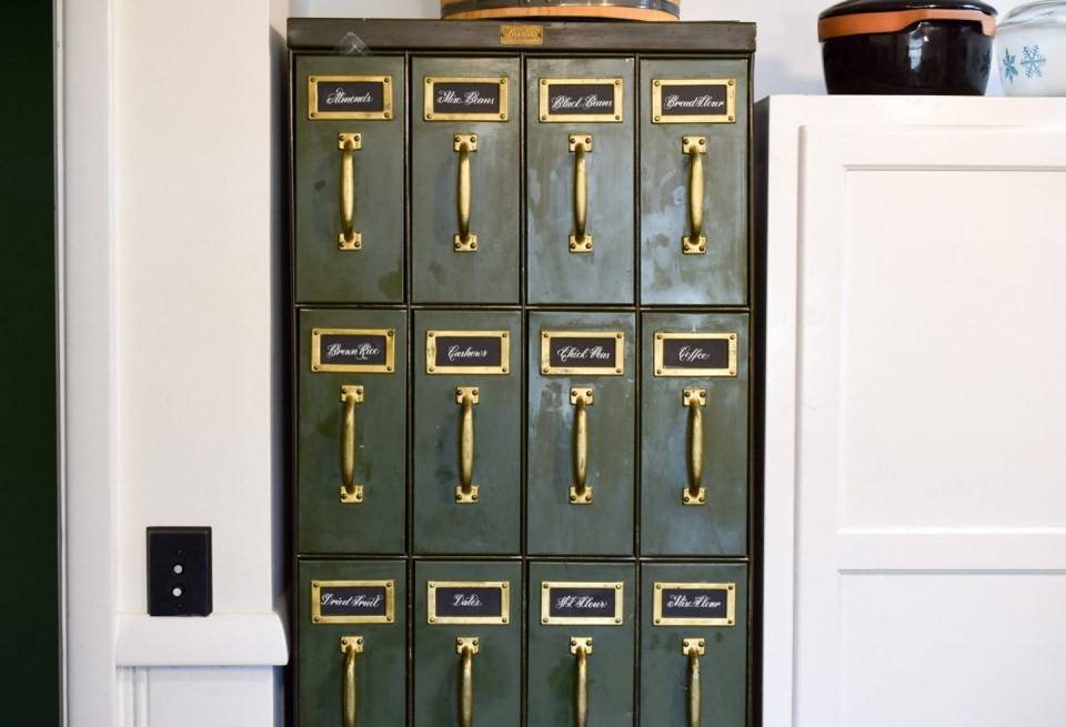 В этом шкафу есть специальные места для этикеток. Если у вас нет такой мебели, подумайте, как по-другому использовать концепцию в своем доме. Мы переделываем кухню, и я подумываю наклеить каллиграфические этикетки на полки (за дверцами шкафа).