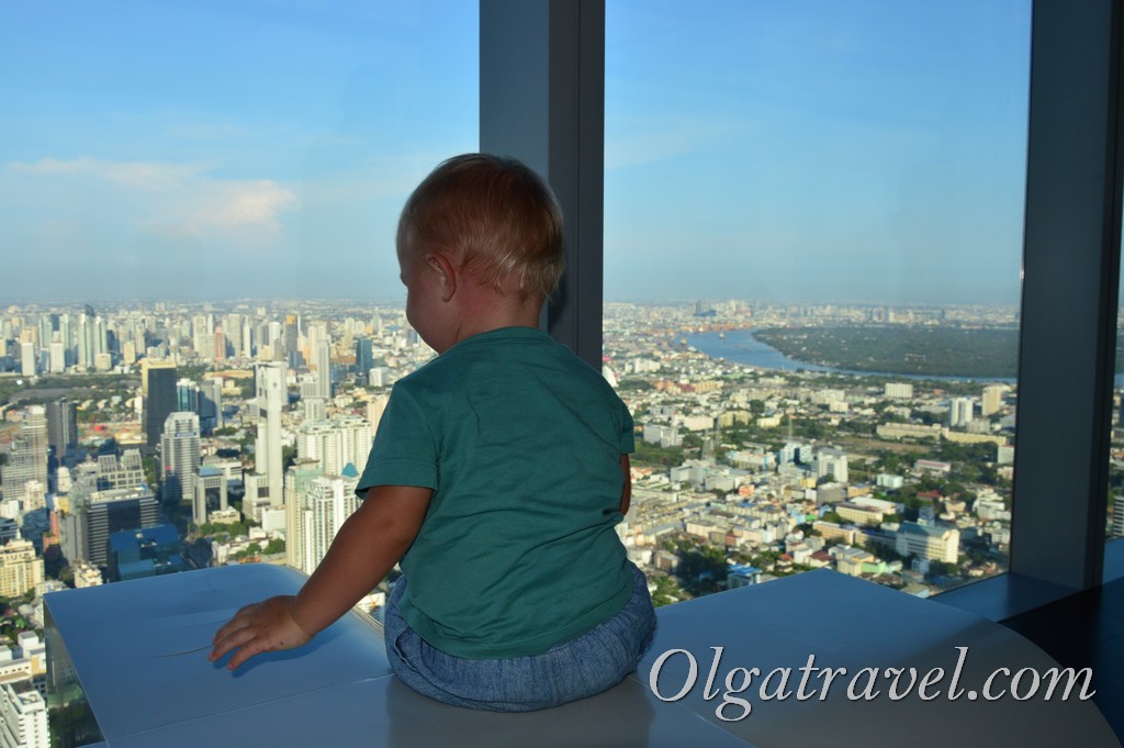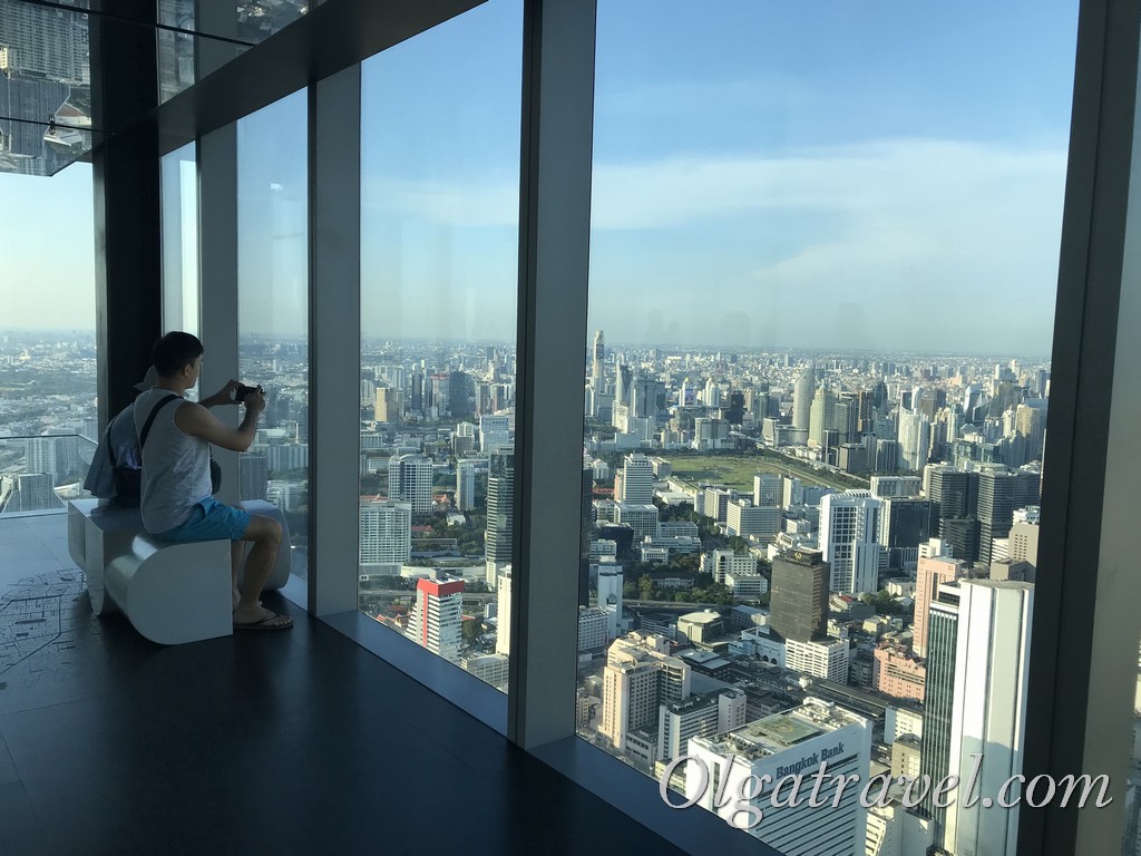 Через огромные окна открывается шикарный вид на Бангкок. Есть несколько скамеек для отдыха, можно купить сувениры, отправить открытку.