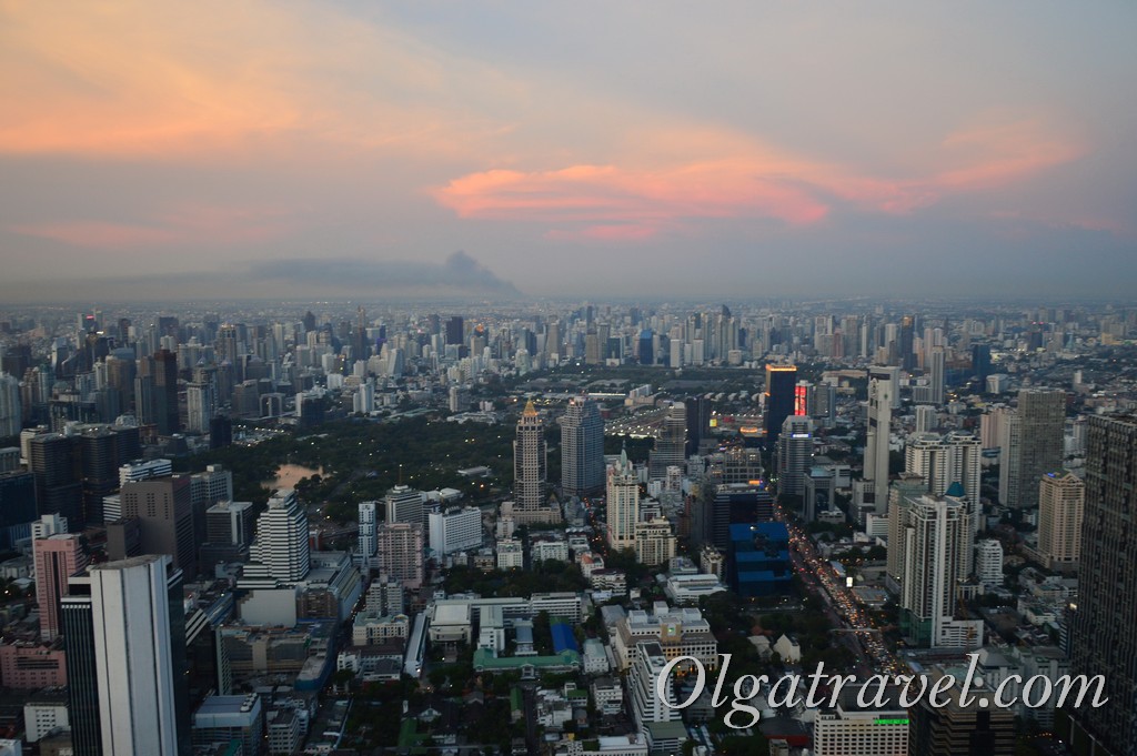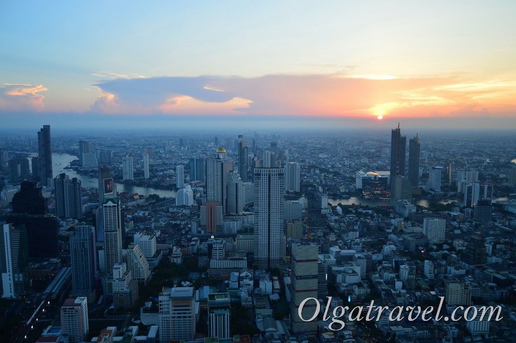 Самый наплыв туристов в МахаНакхон перед закатом, т.е. около 6 вечера. Мы приехали к небоскребу к пяти часам, вышли около семи часов вечера, застали закат, а вот на ночной Бангкок так и не успели полюбоваться.