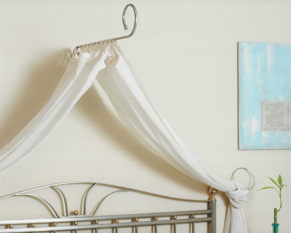 Ткань вешается на дугу, которая прикрепляется к стене над кроватью.