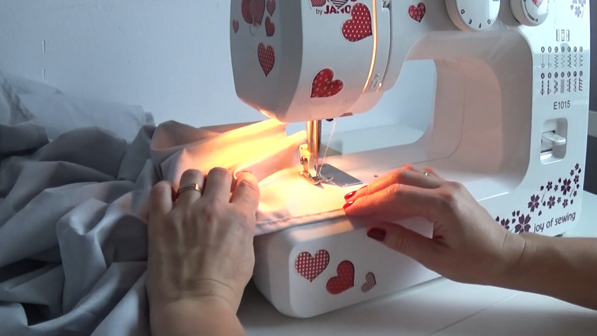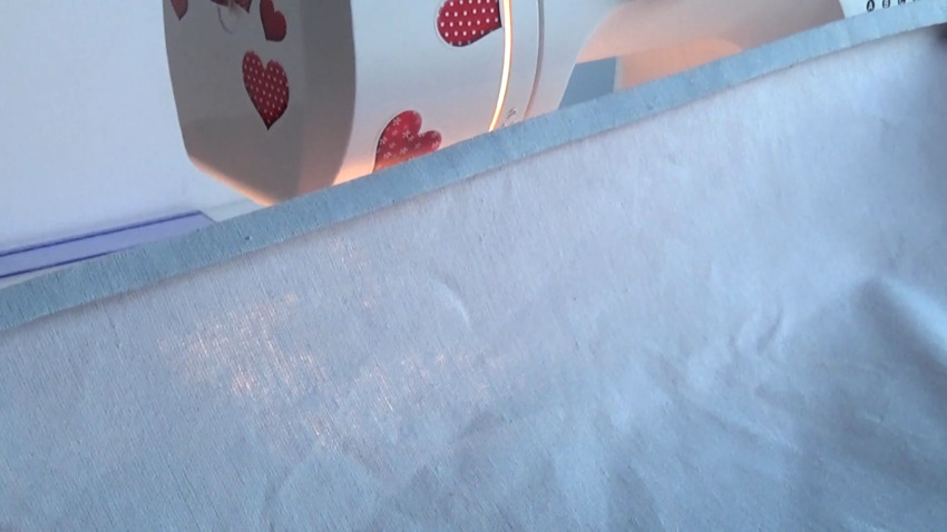 | 3 | ![]() | Далее подверните низ шторы на 1 – 1,5 см, отутюжьте и проложите строчку. То же самое сделайте со всеми краями балдахина. |