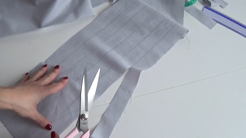 | 8 | ![]() | Каждую тканевую полосу заверните внутрь с 2-ух сторон, сложите пополам и прострочите. |