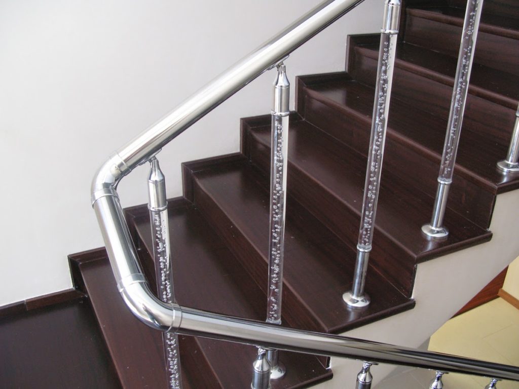 Ограждения из нержавейки являются наиболее приемлемым вариантом для наружного оформления конструкции. Они могут быть полыми, цельными, фигурными. Нержавейка удачно комбинируется с поликарбонатом, пластиком, стеклом. Такие готовые конструкции заметно дешевле изделий, выполненных из одного лишь металла.