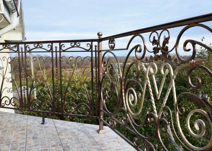 Кованые ограждения для террасы. Такие ограждения должны быть очень изящными для того, чтобы не перегружать конструкцию и не увеличивать нагрузку на фундамент. Пример на фото
