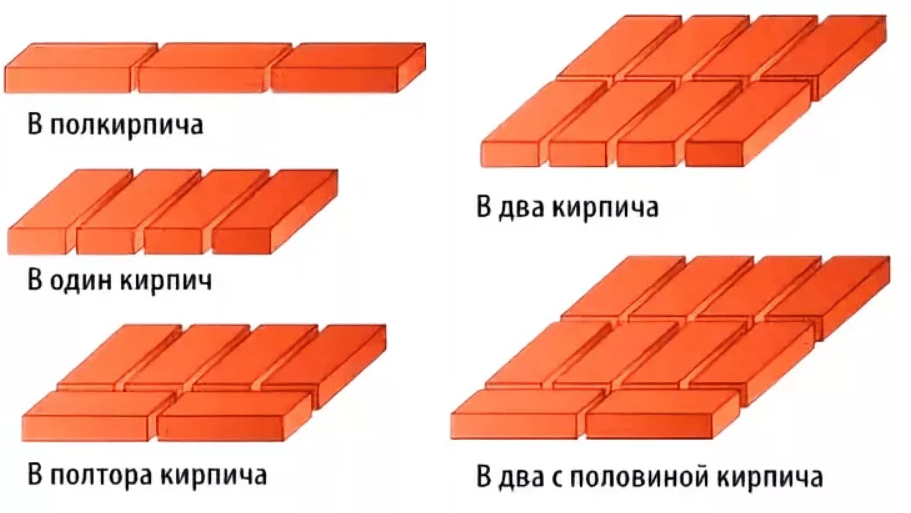 Ширина кирпичной кладки должна быть кратна нечетному или четному числу половинок (1/2) кирпича.