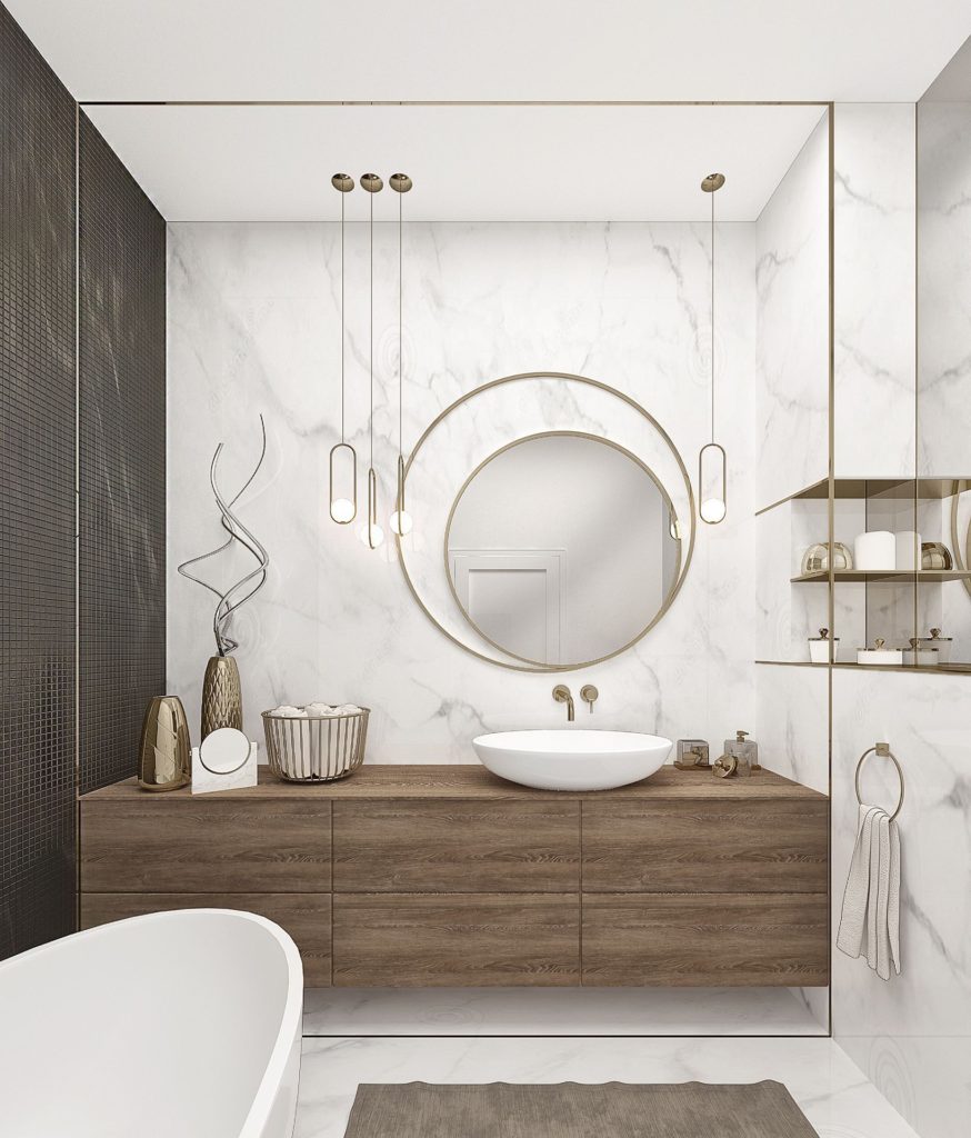 - Если стены помещения выполнены в золотых оттенках, то все остальные детали должны быть нейтральных тонов.