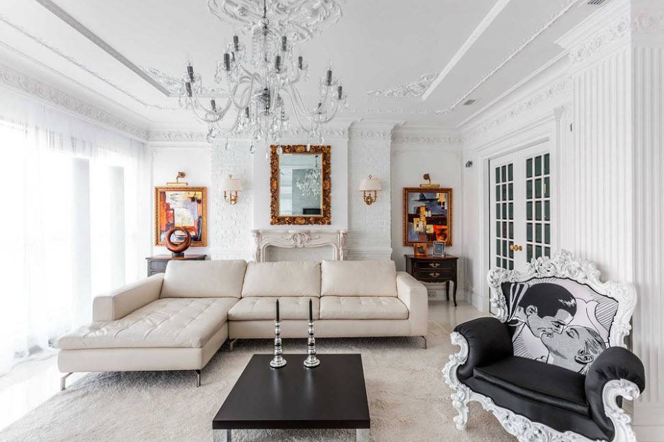 Белая гостиная – это свежий, невесомый, романтичный и изящный интерьер
