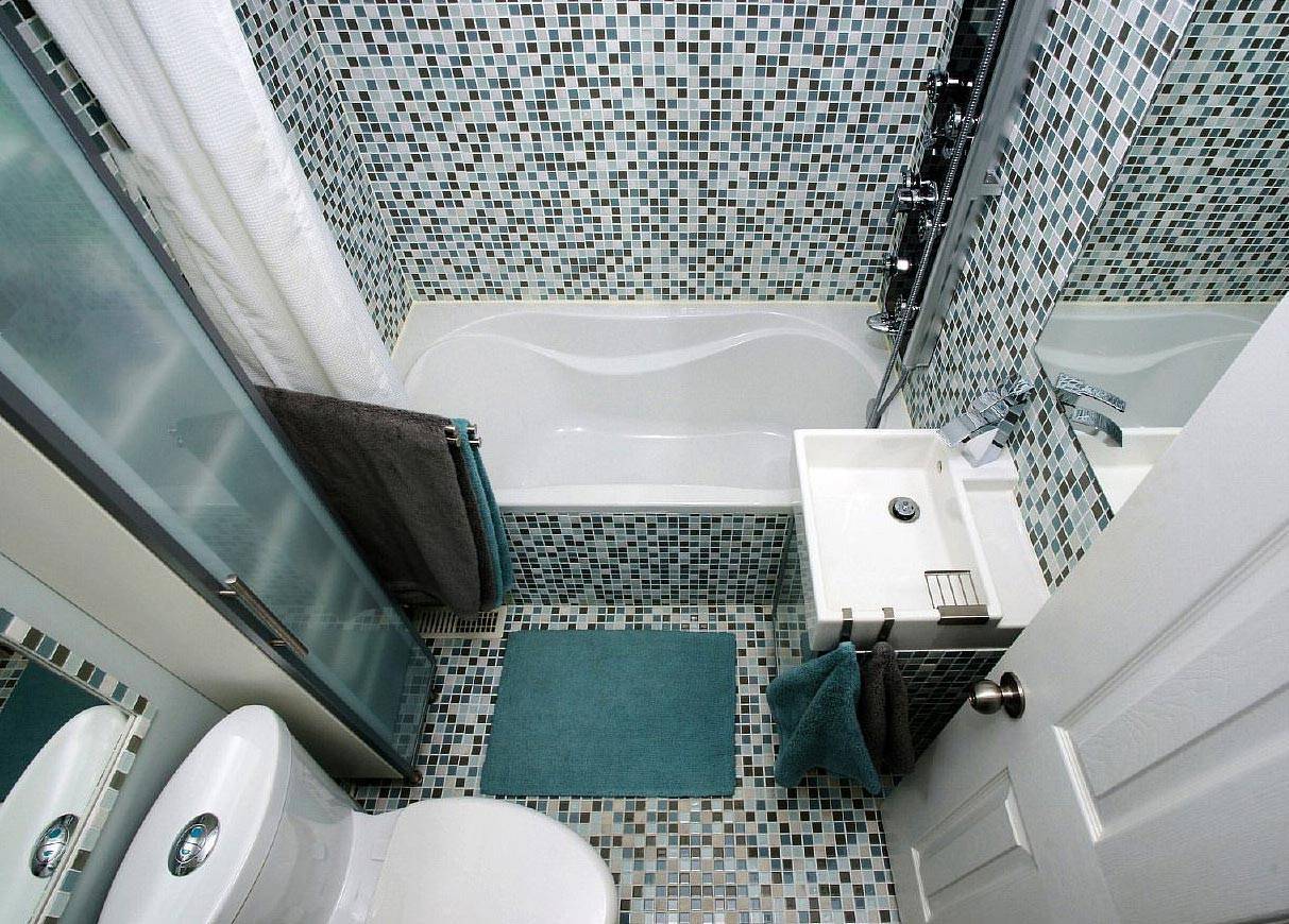 Пример использования мозаики в интерьере маленькой ваннойИсточник vip-1gl.ru